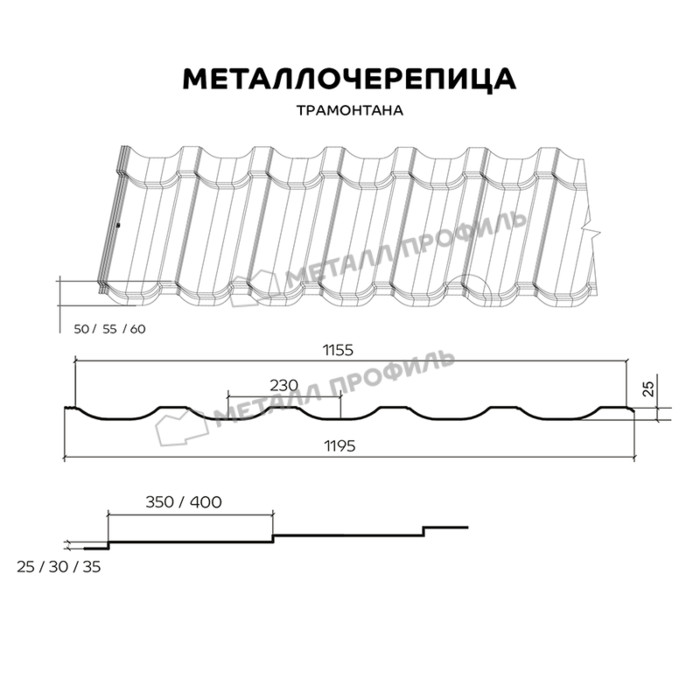 Металлочерепица Металл-Профиль Трамонтана-S 0,5 NormanMP RAL 5005 Синий насыщенный