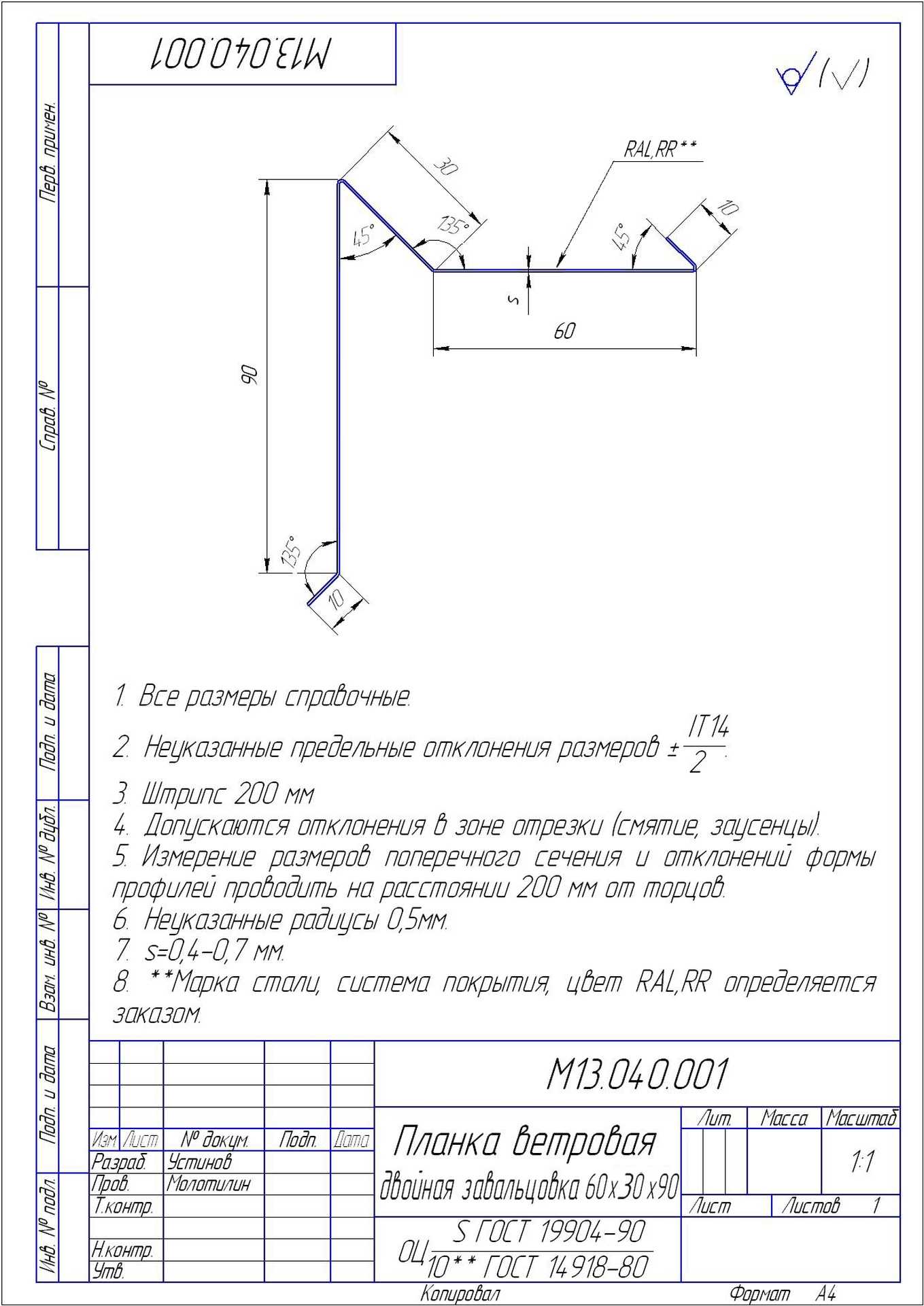 | Защитный слой, г/м2 | Zn 60-100 |