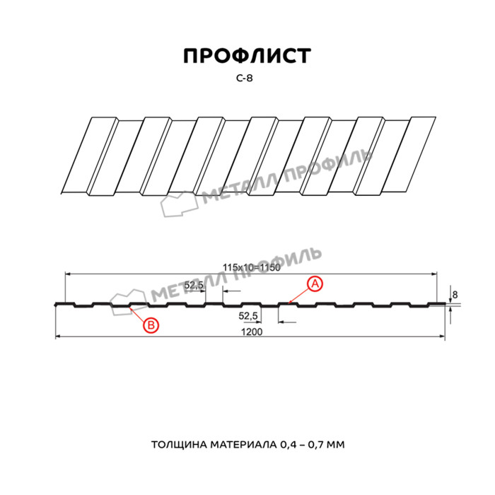 Профлист Металл Профиль С-8 0,5 NormanMP RAL 7024 Серый графит | B