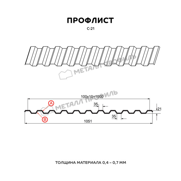 Профлист Металл-Профиль С-21 NormanMP 0.5 мм RAL 7024 Серый графит
