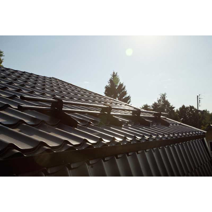 Снегозадержатели предотвращают неконтролируемый сход снега и наледи с кровли. Принцип действия снегозадержателя — порционное пропускание снега и наледи между кровлей и трубками.